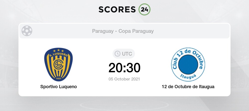 Goal over rate is 70. The schedule and time of 12 de Octubre de Itauguá vs. Sportivo Luqueño 12 de Octubre de Itauguá esultado ao vivo e transmissão online começa no dia 5 de out de 2021 as 2030 horário UTC em Paraguay Luque Estadio Feliciano Caceres como parte do Copa Paraguay Paraguay.